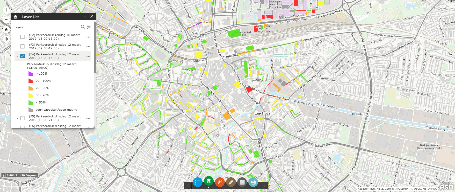 Naast het rapport stellen we een Excel-bestand samen. In dit bestand staan alle resultaten per sectie, straat en gebied. Dit bestand geeft eenvoudig inzicht in de parkeerdruk op verschillende aggregatieniveaus. Naast het kaartmateriaal in het rapport bieden wij alle onderzoeksgegevens aan in een interactieve online kaart. Deze kaart is alleen toegankelijk voor jou en eventueel collega’s met wie je deze kaart deelt.
